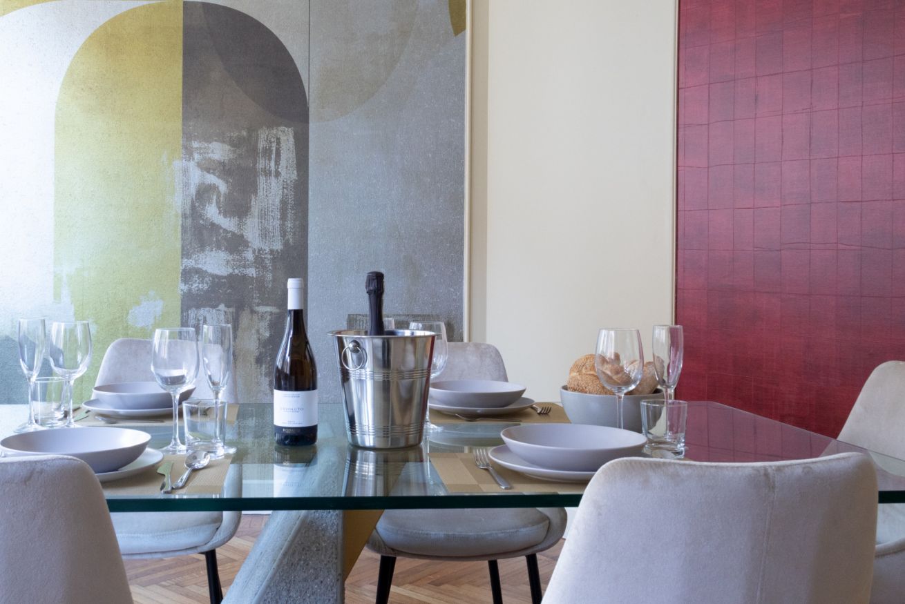 Splendido appartamento nel cuore di Milano. L'ingresso si apre su un ampio salone scenografico, arredato con gusto italiano, dove ogni dettaglio è pensato per offrire comfort: Smart Tv da 80" , doppi divani, lungo tavolo conviviale. Quattro camere da letto, 2 bagni padronali e uno di cortesia. Una cucina completamente accessoriata, una sala da pranzo, terrazza.